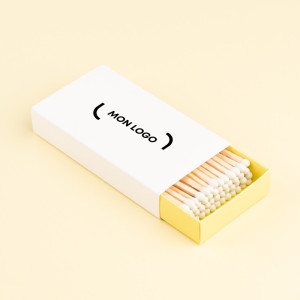 Boîte de 43 allumettes. Couleur de la tête personnalisable. En option : personnalisation de la couleur du corps des allumettes, consultez-nous. Fabrication européenne.