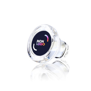 En verre. Rebouche hermétiquement les bouteilles grâce à son joint d'étanchéité en ELVAX® sans plastifiant ni phtalates allergènes. Bouchon compatible avec les goulots de 17,5 mm, 18,2 mm, 18,5 mm et 20 mm. Cartonnette personnalisable recto/verso en quadrichromie avec insertion du bouchon. Emballage et/ou présentoir au choix avec supplément. Bouchons noir ou rose avec supplément tarifaire, consultez-nous.
