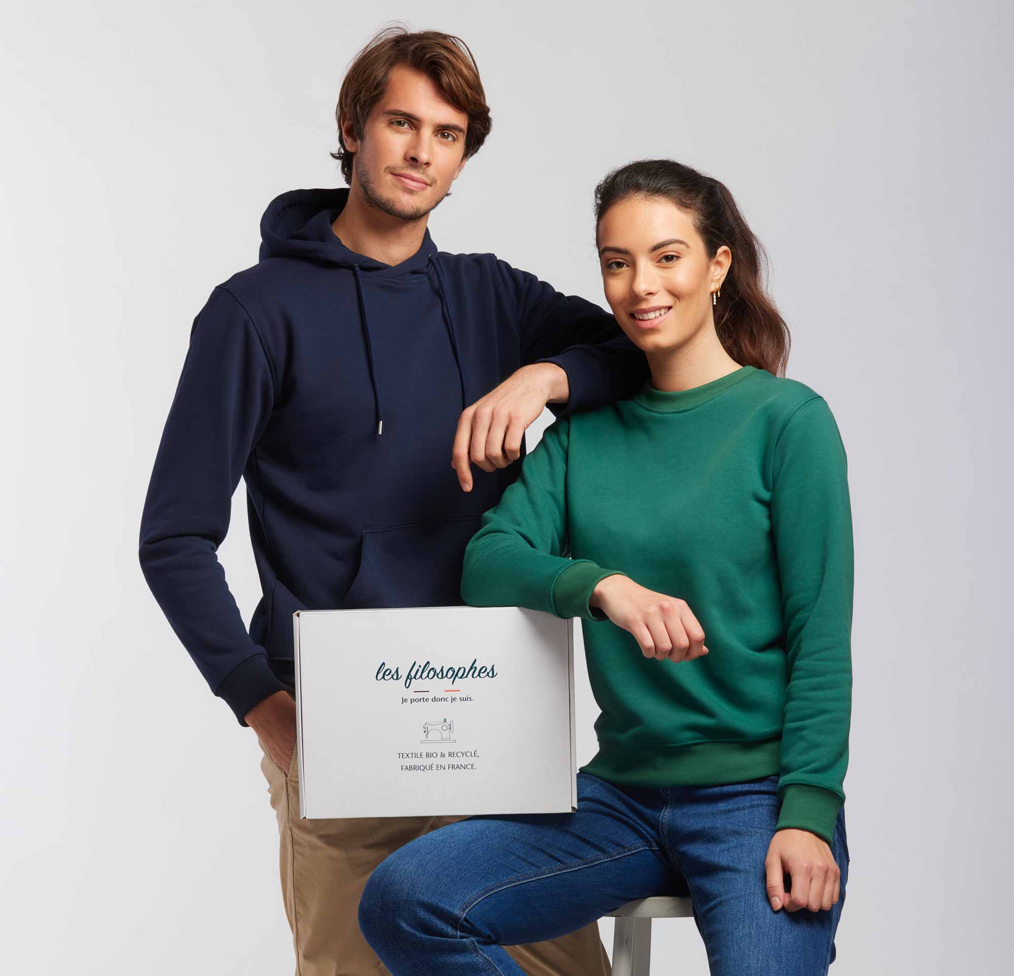 En tant que distributeur, DIMO est fier de proposer les vêtements Les Filosophes en version personnalisable. Leur qualité irréprochable, leur fabrication française et leur engagement éthique en font une base idéale pour des textiles personnalisés à forte valeur ajoutée.