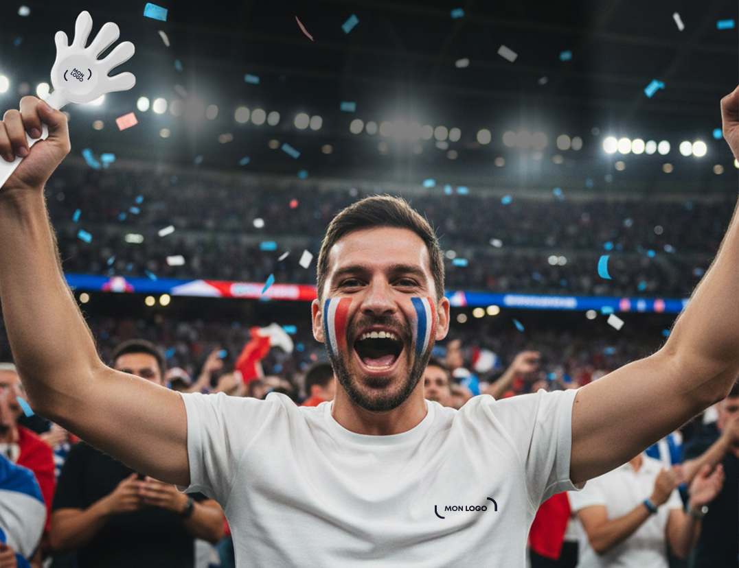 Pour marquer les esprits et offrir une expérience mémorable, rien ne vaut un kit supporter complet : drapeau, clap-clap, face paint… Conditionnés dans un packaging à vos couleurs, ces kits personnalisés sont parfaits pour animer vos événements internes ou récompenser vos meilleurs clients.