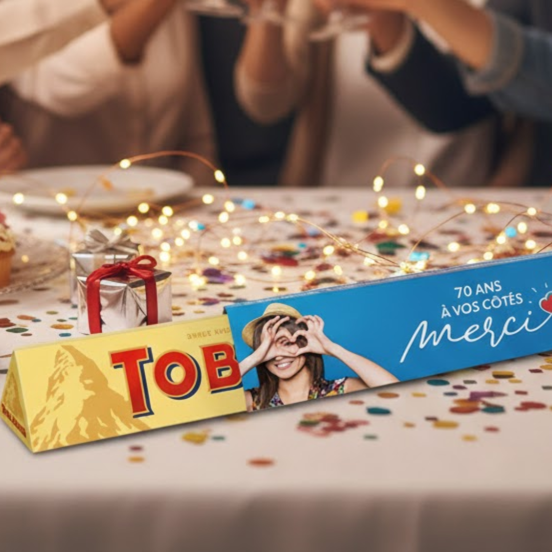 Le marquage du chocolat publicitaire doit être pensé comme un véritable outil de valorisation de la marque. Un visuel clair, harmonieux et cohérent avec la charte graphique renforce la crédibilité de l’entreprise. Une barre triangulaire chocolatée Toblerone® personnalisée, par exemple, offre une surface idéale pour un marquage élégant et impactant. Ce type de produit permet d’allier notoriété, esthétisme et gourmandise, tout en véhiculant une image premium.