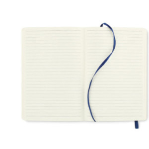 Couverture souple en PU recyclé (81% polyester recyclé, 19% PU). 80 feuilles lignées en papier recyclé. Certifié FSC®. Fermeture élastique et signet en ruban assortis. Pochette porte-document au dos.Date d'expédition estimée