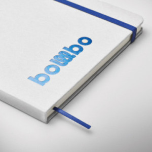Couverture rigide composée de 70 % de briques de lait recyclées et de 30% de papier recyclé. 80 feuilles lignées en papier recyclé. Fermeture élastique et marque-page. Votre personnalisation en gravure laser révelera une couleur métallisée assortie à l'élastique et au marque-pages.