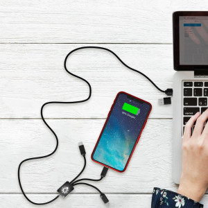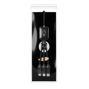 Câble d’un mètre d'une puissance rapide de 20W. Personnalisation avec double logo lumineux recto/verso. Pour Type-C, iPhone et Android. Cordons en rPET (plastique issu de bouteilles recyclées). Double sortie USB-A + USB-C. Finition métal et ABS satiné. Le câble permet de charger plusieurs appareils en simultané. LED blanche, bleue ou rouge disponibles en stock. Livré avec pochette biodégradable et cartonnette en papier recyclé. Garantie 3 ans.