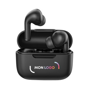 Écouteurs intra-auriculaires sans fil Bluetooth® 5.3 à embouts en silicone avec micro et touche tactile multifonction. Boîtier de rechargement 300 mAh, 5 charges = 18h d'autonomie. Autonomie d’écoute : 2 à 3 h par charge. Son de haute qualité. Portée : 10 mètres. Réduction des bruits. Micro et touches tactiles permettant de passer des appels, d'utiliser l'assistance vocale ou de changer de musique. Livrés en boîte individuelle.