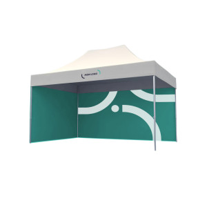 Tente robuste avec 1 toit, 3 murs, 1 porte et 4 socles PVC béton de 15 kg pour le lestage. Armature hexagonale en aluminium anodisé de diamètre 40 mm et d'épaisseur 1,2 mm. Toit, murs et porte en polyester 260 g/m² avec enduction pour garantir l'imperméabilité. Porte avec zip pour ouverture centrale. Attaches auto-agrippantes pour l'accrocher à la structure. Temps de montage d'environ 3 minutes, nécessitant 2 personnes. Livrée avec un trolley à roulettes en polyester 600 D. Personnalisation sur le toit, les 3 murs et la porte en quadrichromie sur toute la surface.Date d'expédition estimée