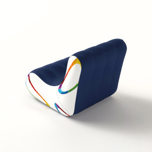 Siège gonflable en PVC souple pour une personne. Housse en polyester imprimée par sublimation quadrichromie. Les aimants (en option) permettent de combiner les formes : juxtaposés sur un même plan pour former une banquette ou disposés tête-bêche. L’ensemble est livré monté. Gonfleur non fourni.Date d'expédition estimée