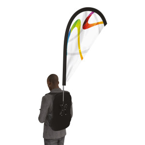 Drapeau sur sac à dos ou trek flag, appelé aussi meneur d’allure avec voile en polyester 115 g/m² en forme de goutte d'eau. Sac à dos monté sur une coque thermoformée épousant la forme du dos. Serrage poitrine et taille. Fourreau noir en polyester 300 D. Mât en fibre de carbone. Personnalisation en sublimation quadrichromie haute définition au verso visible par transparence.Date d'expédition estimée