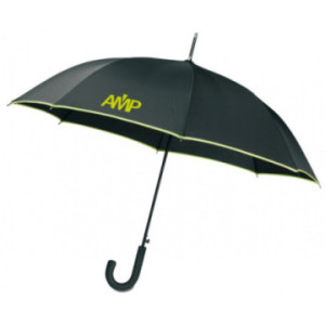 Parapluie canne avec toile en nylon. Poignée courbe en EVA. Mât et baleines en fibre de verre.