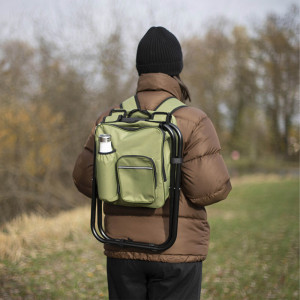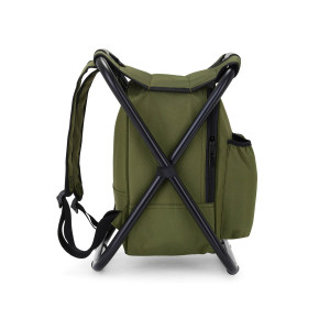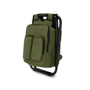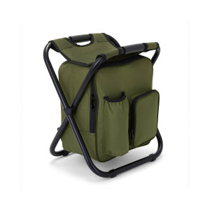 Sac 3 en 1 : sac à dos, sac isotherme et chaise, avec capacité isotherme de 15 L. En tissu Nylon Oxford 600D et cadre en métal. Comprend deux poches extérieures à l’avant dont un range bouteille et une à l’arrière. Bretelles réglables. Poids maximum supporté : 110 kg.