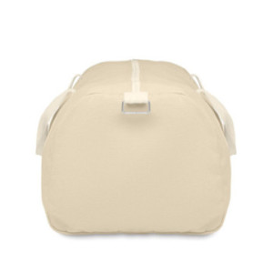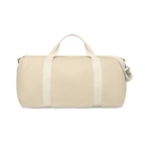 En tissu recyclé 320 g/m². 60 % coton recyclé et 40 % polyester recyclé. Bandoulière réglable et amovible. Poignées de transport. Fermeture zippée.