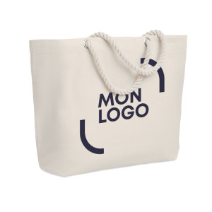 En coton 220 g/m². Anses en corde.