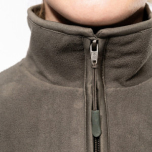 280 g/m². Polyester. Antiboulochage. Fermeture zippée. Coupe cintrée. 2 poches zippées sur le côté. Biais de finition col, poignets et zip. Certification OEKO-TEX STANDARD 100. Coloris heather, tarifs sur demande. Tailles XS à 4XL.